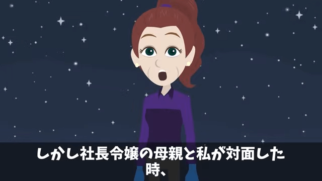 社長令嬢はいつも目下の人に強く当たっています。 しかし社長である母と主人公が対面したとき、社長令嬢は顔面蒼白になるのでした。