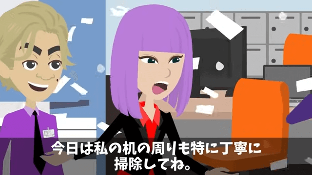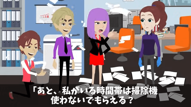 社長令嬢は「今日は私の机の周りもとくに丁寧に掃除してね」と主人公に伝えます。 そして、自分がいる時間帯は掃除機を使わないようにと社長令嬢は言いました。