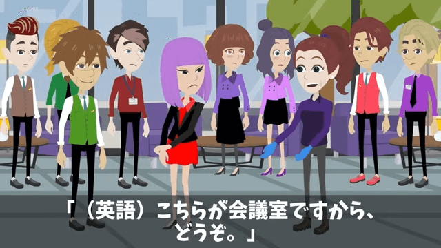 このままでは商談どころではないと思った主人公は手伝いを申し出ました。 そして主人公が外国語を話せることを説明すると、女性社員は「もうこれしか道はないです…」と言ったのです。