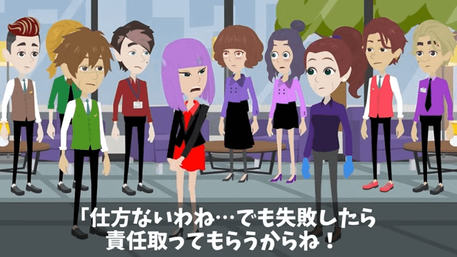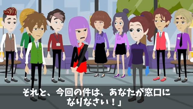 社長令嬢は「仕方ないわね…でも失敗したら責任取ってもらうからね!」と主人公に言います。 そして「今回の件は、あなたが窓口になりなさい!」と女性社員を指名しました。