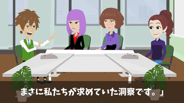 主人公の話を聞いた外国人投資家は「素晴らしい分析ですね!」と感心します。 そして「まさに私たちが求めていた洞察です」と言いました。