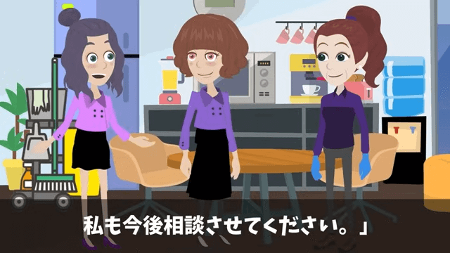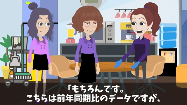 女性社員は資料の見方について主人公に相談します。 そこで主人公が詳しく説明すると、そばで聞いていたもう1人の女性社員が「私も今後相談させてください」と言いました。