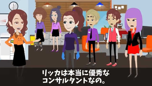 社長は主人公が本当に優秀なコンサルタントであることを説明します。 しかし、それを信じられない社長令嬢は「お母様!騙されちゃダメよ!」と言い…。
