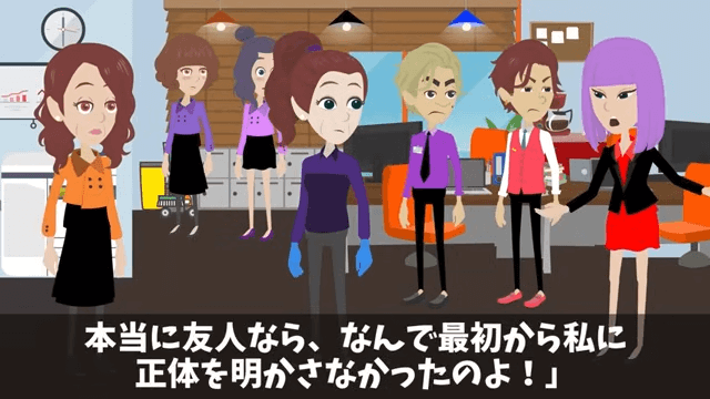社長は主人公が本当に友人であることを社長令嬢に伝えました。 すると社長令嬢は「本当に友人なら、なんで最初から私に正体を明かさなかったのよ!」と言います。