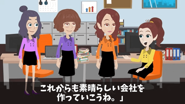 社長は主人公に「一緒に頑張ってくれて本当にありがとう」とお礼を言います。 それに対し主人公は「こちらこそ。これからも素晴らしい会社を作っていこうね」と答えたのでした。