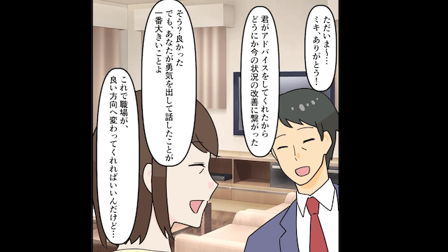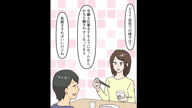 まったく反省しない社長令嬢に「弁護士に相談したうえで上司にも掛け合います」と告げた夫。 すると社長令嬢は焦り、勤務態度を改めることを約束してくれました。
