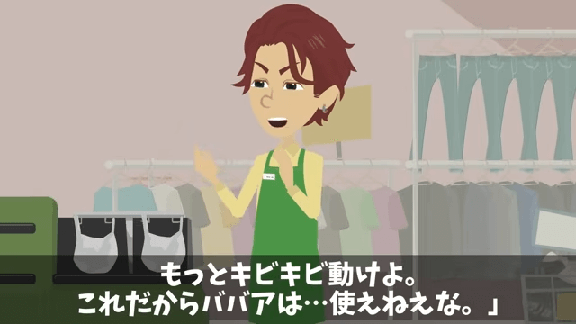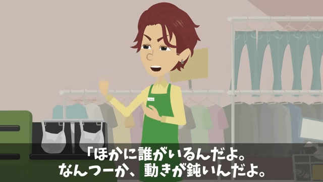 店長は主人公に「なんつーか、動きが鈍いんだよ。もっとキビキビ動けよ」と声をかけます。 それに対し主人公は「も、申し訳ありません。気をつけます」と謝りました。