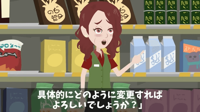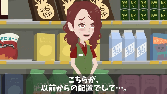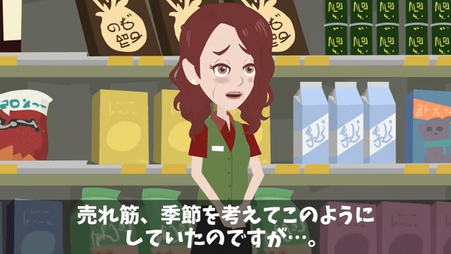 新店長は「この商品の配置、おかしくない?」と主人公に声をかけます。 それに対し主人公は、売れ筋や季節を考えてこの配置にしていることを説明し「具体的にどのように変更すればよろしいでしょうか?」と新店長に尋ねました。