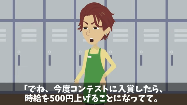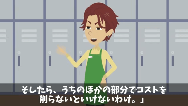新店長は今度コンテストで入賞すると、時給を上げなければならないことを主人公に説明しました。 そして新店長は「そしたら、うちのほかの部分でコストを削らないといけないわけ」と言います。