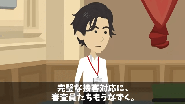 先輩はまったくうまくできないまま、時間切れになってしまいました。 一方、後輩は完璧な接客を見せ、審査員たちもうなずいていたのです。