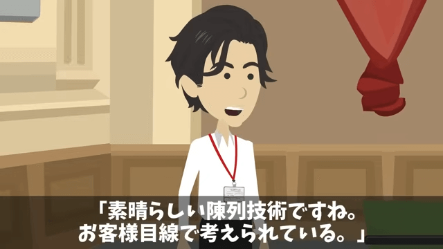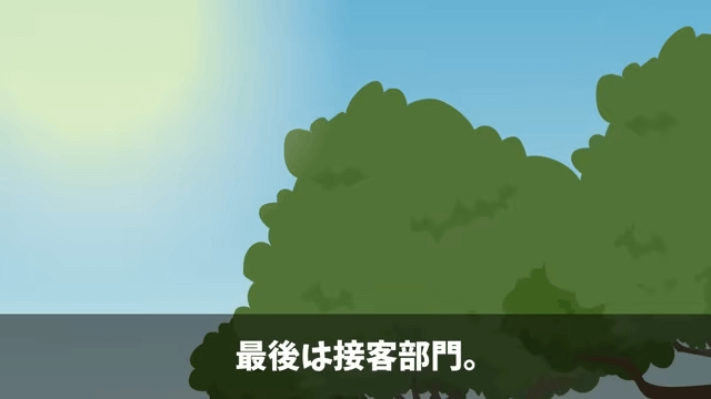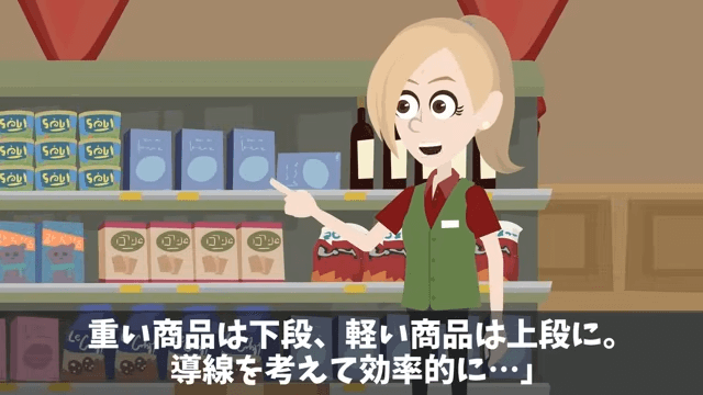 品出し部門では、先輩は半分も陳列できないうちに時間切れになってしまいます。 一方、後輩は素晴らしい陳列技術を見せ、審査員から高評価を受けました。