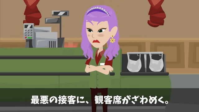 今回は『新店長「時給半分か辞めるか決めろ!」⇒後日、コンテストで再会した結果』を紹介します。 後輩の品出しを見た審査員は「素晴らしい陳列技術ですね。お客様目線で考えられている」と褒めます。 そして最後の接客部門では、先輩がクレームに対応しました。