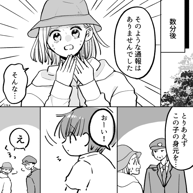 警察が到着し、事情を説明した主人公。 子どもが勝手に家からいなくなった可能性も考えますが、そのような通報はないと警察は言います。