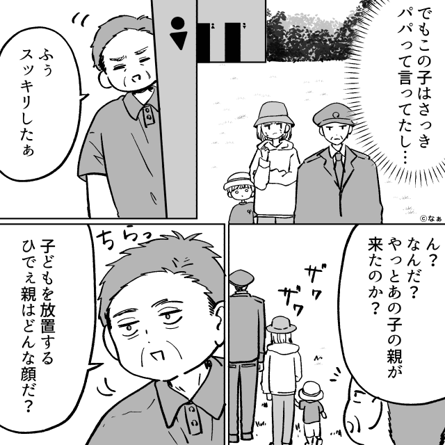 一方、トイレから戻ってきた高齢男性は、父親の顔を見て…。