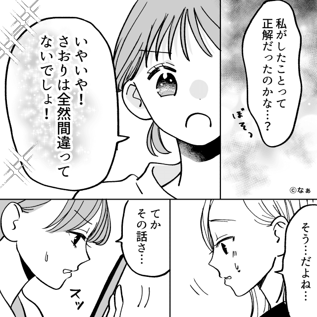 友人は「全然間違ってないでしょ!」と主人公を肯定してくれて…。
