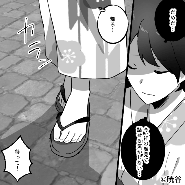 先輩は浴衣姿で彼氏に密着し、後からやってきた主人公はその場を見てしまい…。