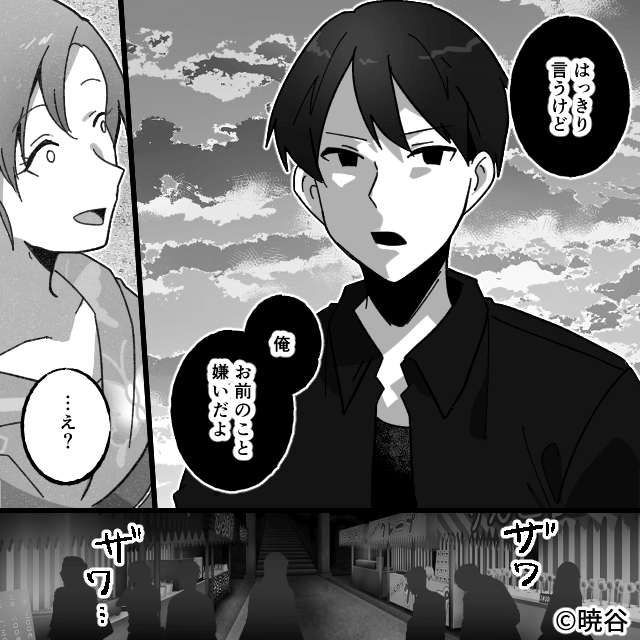 主人公が唖然としていると、彼氏が「俺、お前のこと嫌いだよ」と先輩に告げたのでした。
