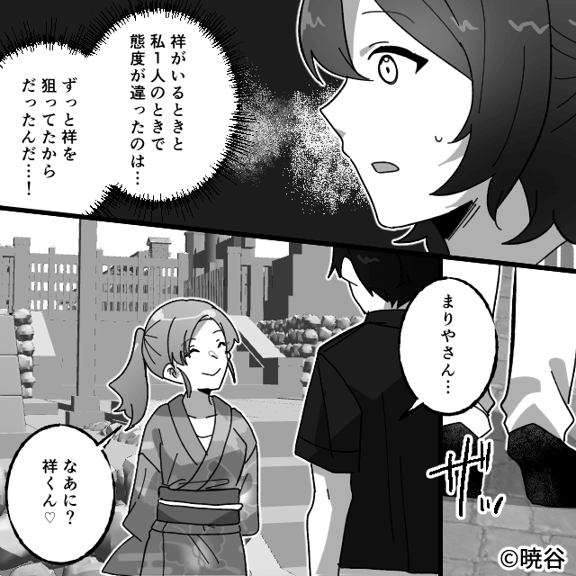 主人公を追いかけてきた彼氏はきちんと事情を説明してくれ、主人公はそこで先輩に待ち合わせ時間を聞かれた意味に気づきます。 そして彼氏を追いかけてきた先輩は、主人公に「彼のこと私にちょうだい」と言ってきて…。