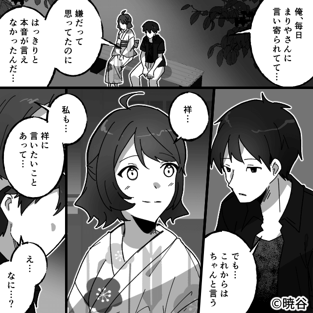 周囲の人からジロジロと見られ、恥ずかしい思いをした先輩は「帰るっ!」と去っていきました。 その後、主人公は彼氏に謝罪され、仕切り直して祭りを楽しむことに。