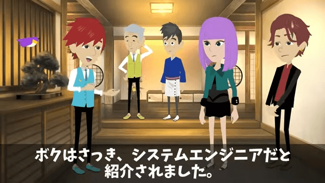 今回は『元カノ「高卒のアンタと違ってウチの旦那は大企業勤めなのよ♡」というので、俺の正体を明かした結果』を紹介します。 主人公が社長に招待してもらったことのお礼を言うと、社長は「堅苦しい店を選んでしまって申し訳ない」と言いました。 そして社長は、元カノの夫のほうを見て「この方は…?」と主人公に尋ねます。