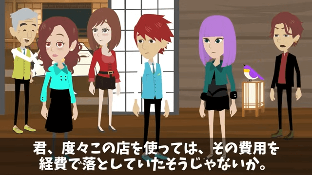 社長は元カノの夫が料亭の費用を経費で落としていたことを指摘しました。 元カノの夫が「なんでバレたんだ?」と焦っていると、従業員が「俺が話したんだよ」と言い…。