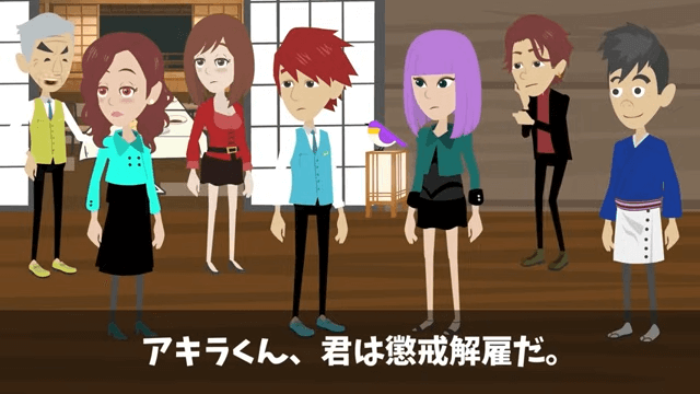 社長は従業員が自分の息子で、会社の役員でもあることを説明します。 そして社長は元カノの夫に「君は懲戒解雇だ」と伝えました。