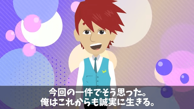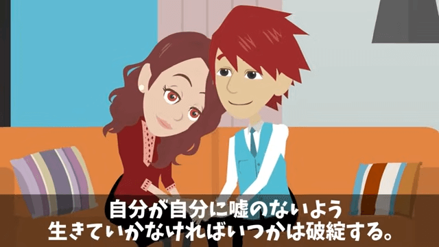 今回の一件で、自分が自分に嘘のないように生きなければ破綻してしまうことを実感した主人公。 そして主人公は、妻と未来の子どもとともに誠実に生きることを決意するのでした。