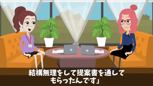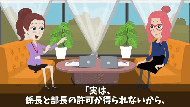 契約書に目を通した主人公は「…うん。とてもいいプロジェクトですね」と言います。 すると担当者は係長と部長の許可が得られず、無理をして提案書を通したことを主人公に説明しました。
