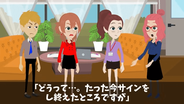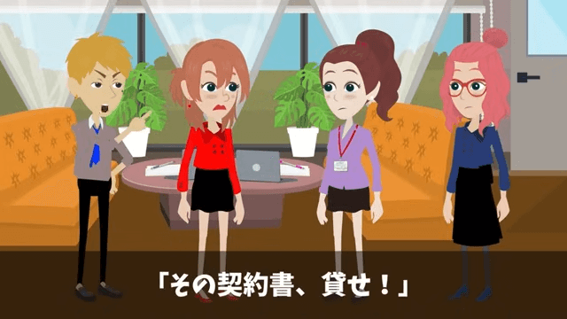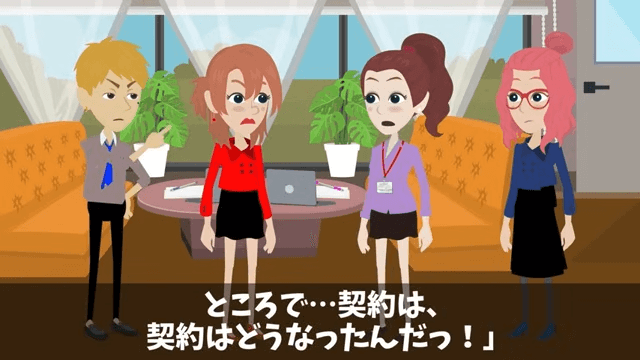 突然現れた部長は「ところで…契約は、契約はどうなったんだっ?」と言いました。 そこで主人公が「今サインしたところだ」と答えると、部長は慌てて契約書を奪い取り…。