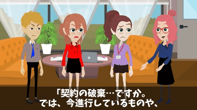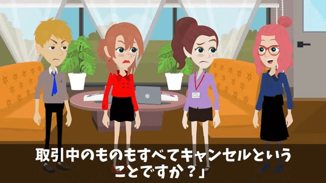 契約書を破った部長は「契約を破棄し、これから先も取引はしない」と主人公に伝えます。 そこで主人公がすべての取引をキャンセルするのかを確認すると、部長は「そういうことだ」と答え…。