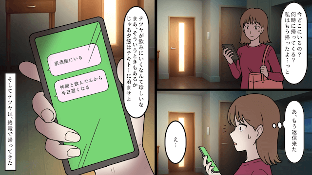 飲みに行っている夫