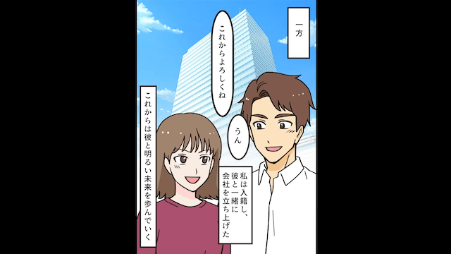 その後、子どもが元夫の子ではないことが判明して2人は離婚し、主人公は婚約者と入籍して会社を立ち上げたのでした。