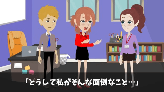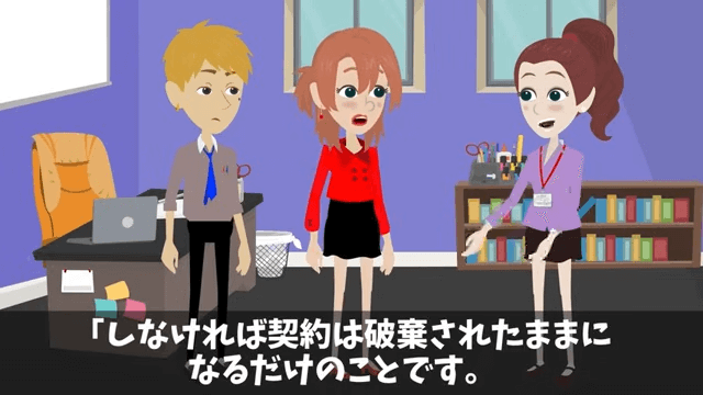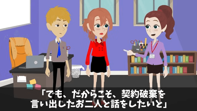 担当者は「主人公が部長と係長の2人と話したがっている」と説明します。 係長は嫌がりますが、そうしなければ契約が破棄されたままになることを告げると…。