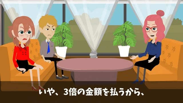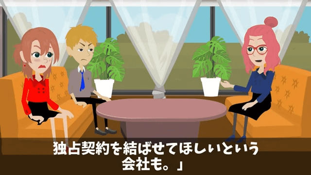 主人公は、自分たちの技術を買ってくれている会社がたくさんあることを説明します。 そして「中には御社が払っている3倍の金額を払うから独占契約を結ばせてほしいという会社もある」と伝えました。
