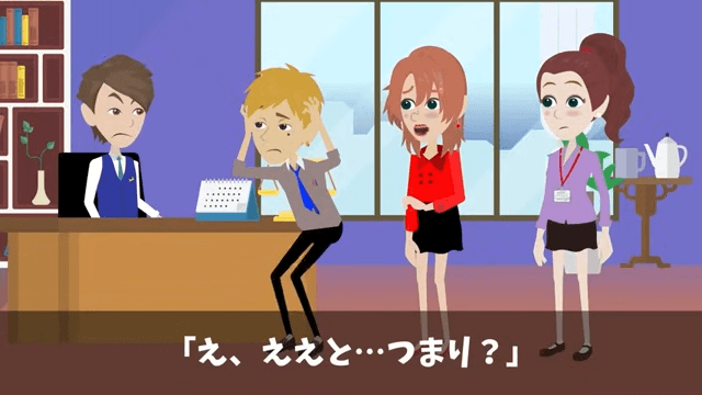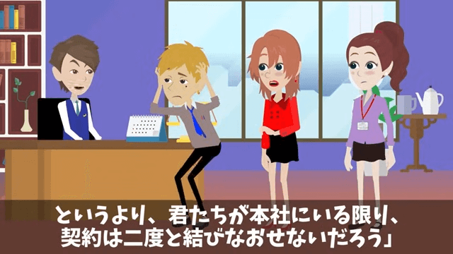 社長は「部長と係長が本社にいる限り、契約は結びなおせない」と言います。 それを聞いた係長が「え、ええと…つまり?」と尋ねると…。