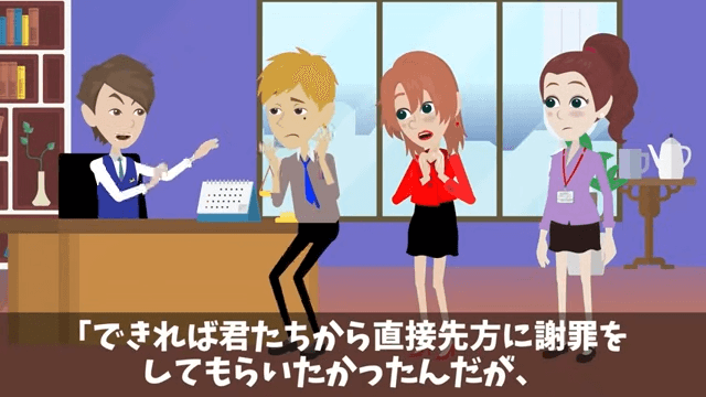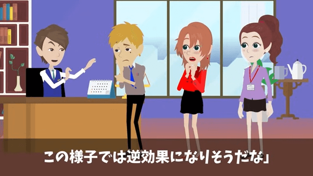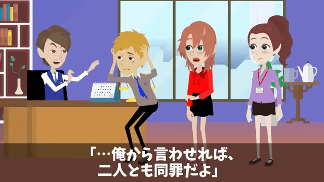 言い争いを始める部長と係長に、社長は「…俺から言わせれば、2人とも同罪だよ」と言いました。 そして、反省の様子がない2人に謝罪してもらうのは逆効果だと考えた社長は…。