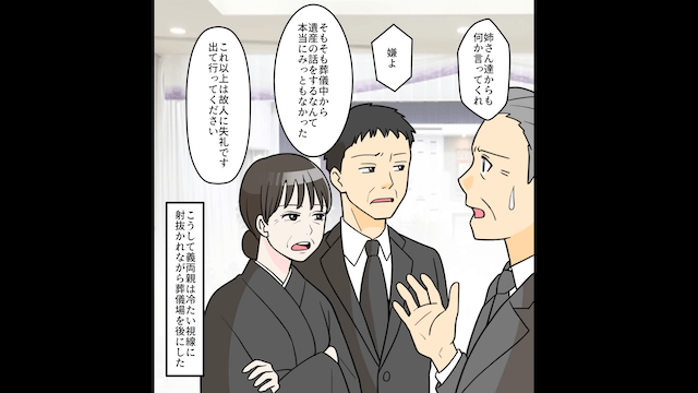 夫の葬儀中に義母が「涙流しても遺産はあげない(笑)」と勘違いしているので真実を伝えた結果#4