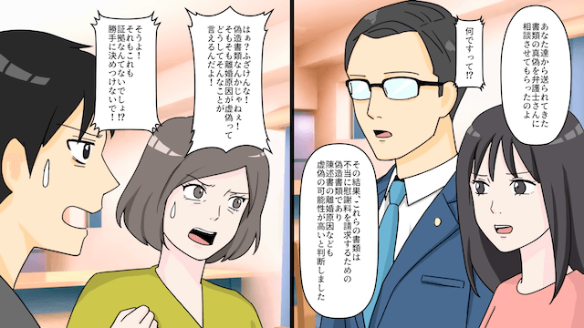 夫婦生活で精神的な苦痛を受けたからと診断書をつけて慰謝料を請求してきた元夫。 主人公はそんな元夫に呆れて無視しますが、元夫と元義母は主人公や父の会社にまで書類を送ってくるようになります。