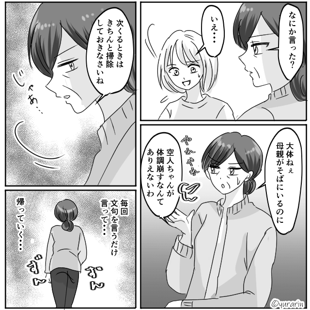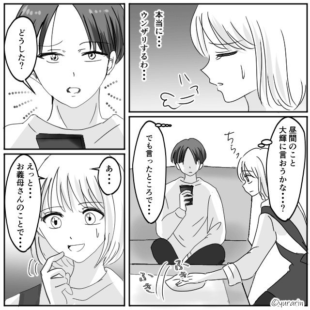 ある日、義母が突然家にやってきて、イヤミを言うだけ言って帰っていきました。 そんな義母の行動にうんざりし、主人公は夫に相談するか悩んだ結果…。