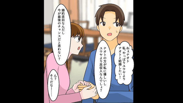 婚約者の態度を見て、反省していないと感じた主人公。 そして口論から数日後、浮気相手である主人公の友人に主人公の悪口を言っていた婚約者は、友人に結婚をせがみます。