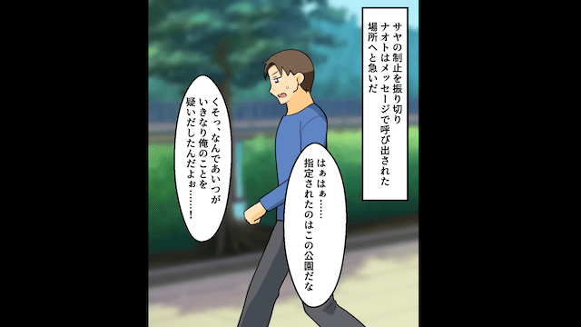 婚約者が怒ったそのとき、友人はメッセージで誰かに呼び出されたようで慌てて指定された公園へ向かい…。