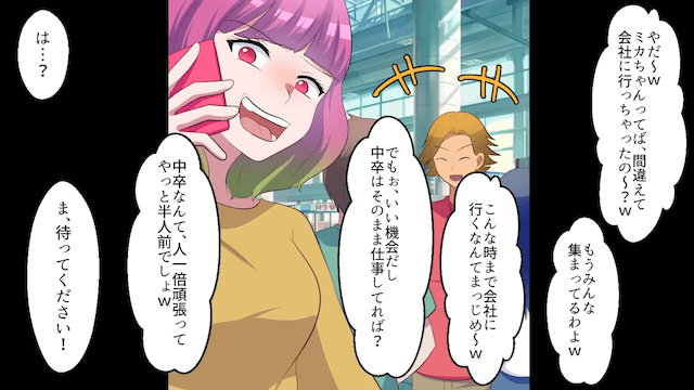 社員旅行で…同僚「中卒は来ないで(笑)仕事しろ」私「はーい」快諾した結果⇒勘違いしていた同僚「…へ?」