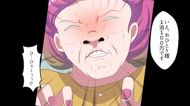 高級ホテルに到着すると社員たちは大喜びし、社長令嬢は自分の手柄のような態度を取りました。 しかし受付時に、主人公がいないのであれば1泊100万円だと言われてしまい…。