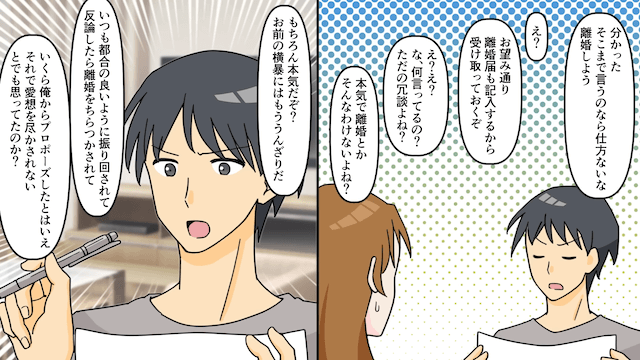 ”離婚届け”で脅す妻「嫌なら私に尽くして!」夫「離婚してもいいよ?」後日⇒お望み通り離婚届を提出した結果