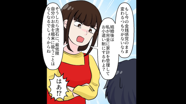 そこで主人公は「結婚後は私が完全に家計を管理してお小遣い制にするわよ?」と提案して…。