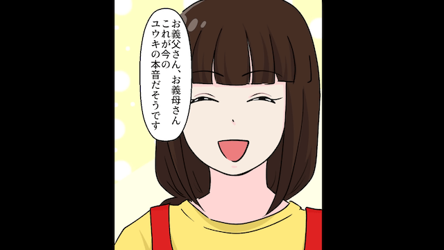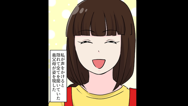 しかしやはり婚約者は反省する気がないようで、主人公はそばで話を聞いていた義両親に声をかけました。