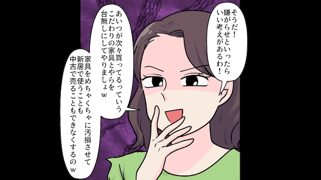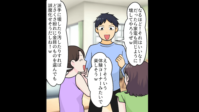 そして3人は主人公に嫌がらせをするため、家具や家電を壊すという悪巧みをしたのでした。
