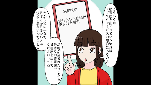 義姉妹も「警察沙汰だけは勘弁してちょうだい!」とすがってきますが、被害届の提出はサブスクサービスの規約で決まっていて…。