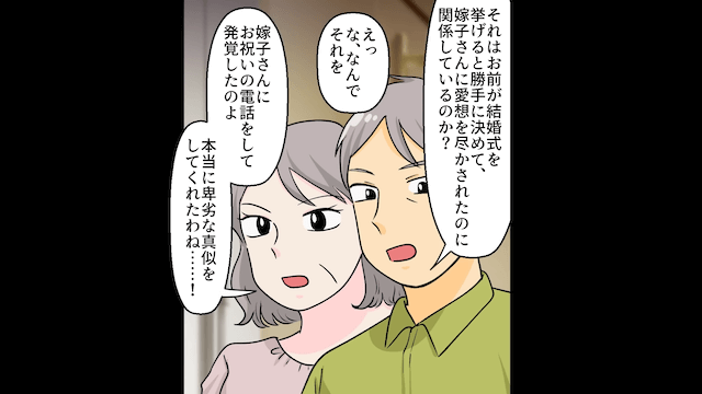 売ったものをすべて買い戻すのが最低条件だと主人公が告げると、婚約者と義姉妹は慌ててその場から逃げ出し、義両親に助けを求めました。 しかし婚約者が勝手に結婚準備を進めたことで、義両親は「本当に卑劣な真似をしてくれたわね…!」と怒っていたのです。
