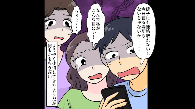 警察が近づいてきたことに気づいて慌てて逃げ出した婚約者と義姉妹ですが、結局捕まってしまい、重い罰を受けることに。 その後、釈放されて義実家へ行くも更地になっていたため、3人は自分たちの行動を後悔します。